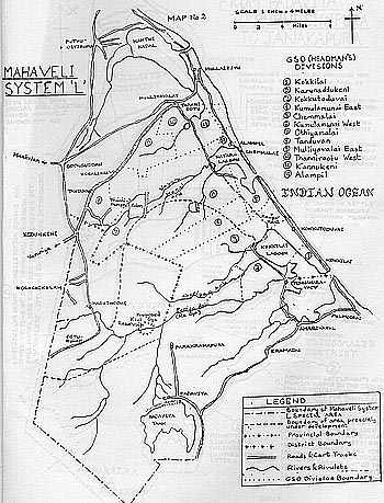 Whatever was in the minds of the framers of the Mahaveli Act in 1979, the possibilities were quick to be realised. Led by the Buddhist monk, Dimbulagala Thero and with material help from the Mahaveli Authority, about five thousand  Sinhalese were transported into Batticaloa District on 1st September 1983, just after the July violence. The number later climbed to 4O thousand. They proceeded to occupy lands which were designated for System B (Maduru Oya) of the Mahaveli project, driving away several Tamil and Muslim villagers who were settled in the Vadamunai area. The idea was that once the project got under way, it was simply left to the MASL to regularise unlawful occupation. The attempted conquest fizzled out following strong protests by the Tamil representatives, Indian pressure on the President of Sri Lanka and the December rains. Some of the Sinhalese who were asked to leave by the Government later went to Weli Oya, where again Rev.Dimbulagala took a keen interest. The inner circle in the MASL which hatched the plot was very bitter with what was seen as the work of Tamil moles from within the public service and cold feet on the part of Gamini Dissanayake, then the minister concerned. [See `For a Sovereign State' by M.H.Gunaratne]. Between then and now, the cleansing of Tamils from the MASL has been practically completed-more thoroughly than in the armed forces.